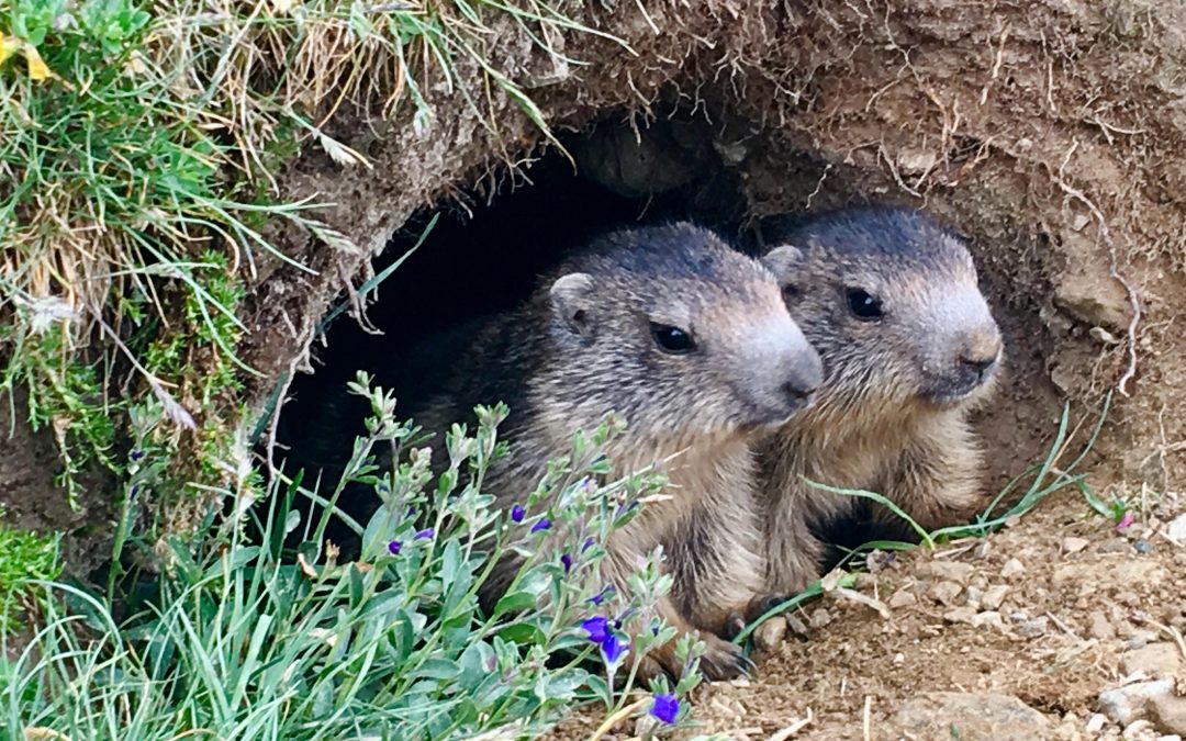 Di buon mattino, attraversando la cheta zona del pianoro, scopro con sorpresa gli occhi curiosi di due marmottine stupite al mio passaggio.