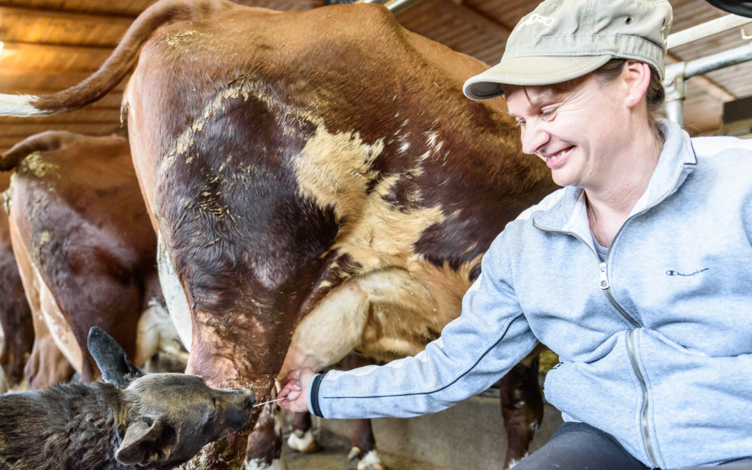 Istinto materno Gesto premuroso di Stefania, in un momento di pausa durante la mungitura pomeridiana.