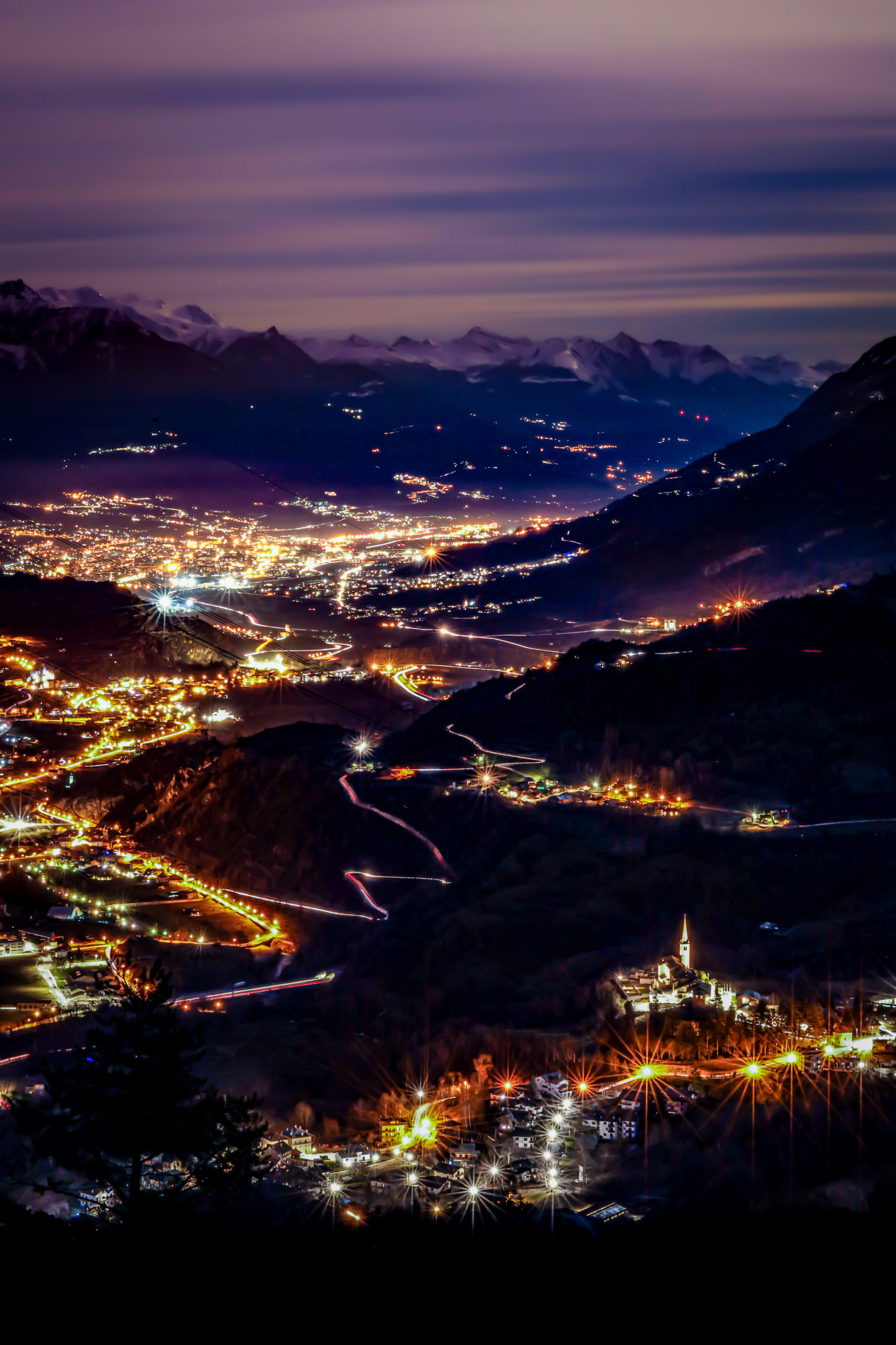 Aldilà del crepuscolo Una lunga esposizione della valle iniziata dopo il tramonto Alberto NorbiatoIntrod, Les Combes