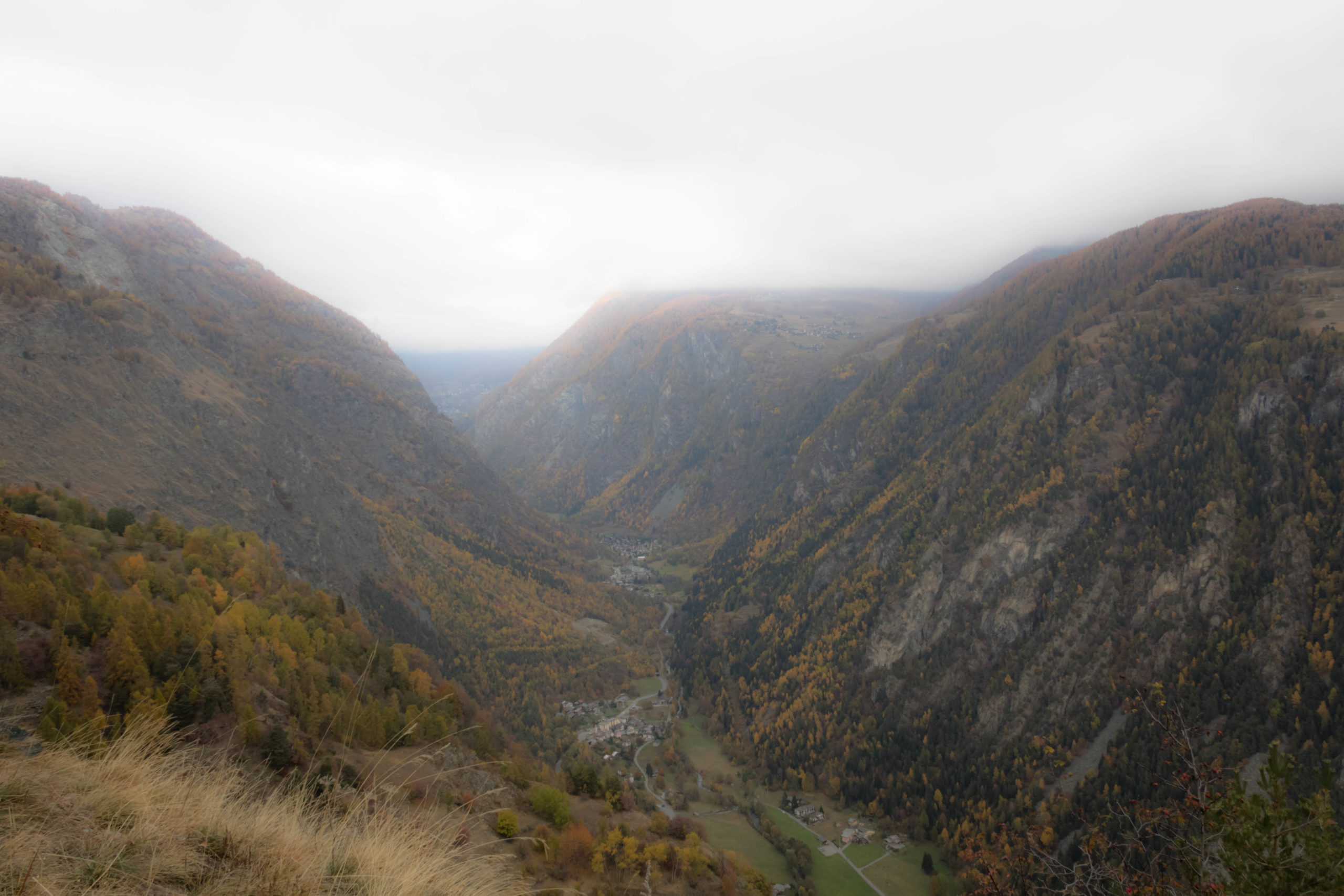 Una luce filtra all’improvviso nel cielo coperto; è una luce morbida e fredda, apparentemente in contrasto con i colori caldi della vegetazione. Si diffonde nella valle e questa la accoglie e la abbraccia. Tutto d’un tratto avverti una sensazione di benessere, qualcosa è cambiato.