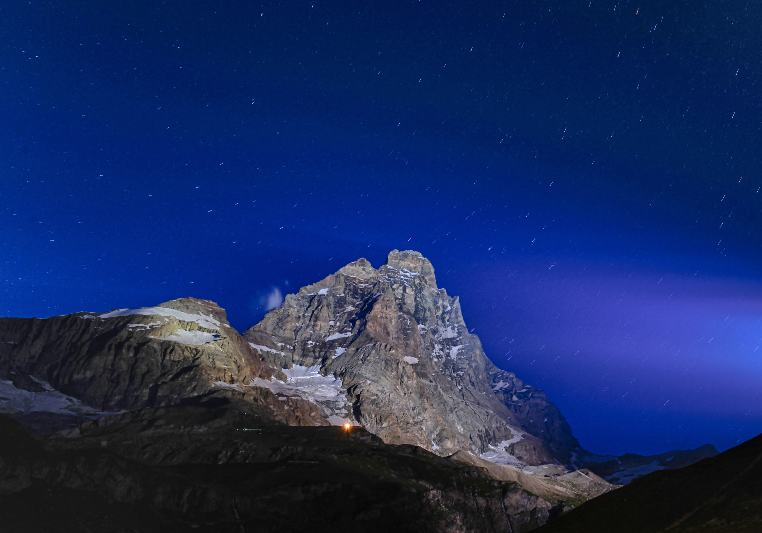 Luce sulla Gran Becca Cartolina notturna del Cervino, contemplato da migliaia di stelle Fulvio RaviolaValtournenche, Breuil-Cervinia