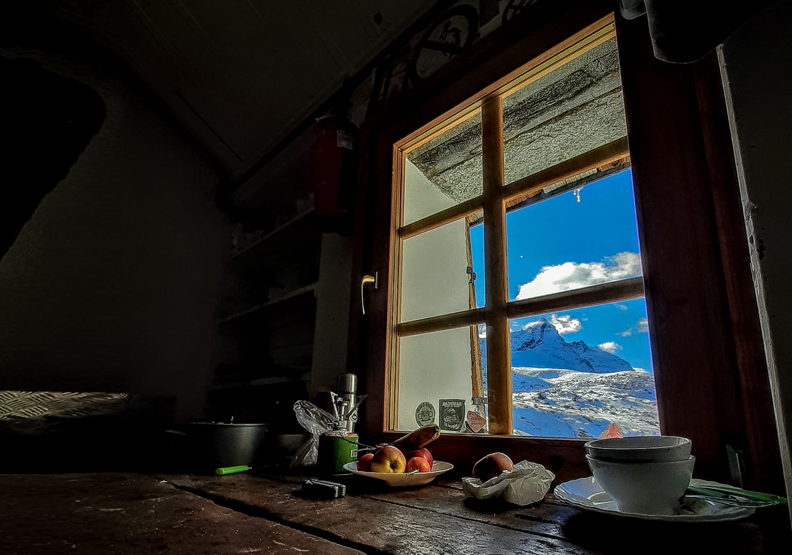 Al rifugio invernale Vittorio Emanuele, ottobre 2020: momenti di condivisione guardando la prima neve che imbianca le vette.